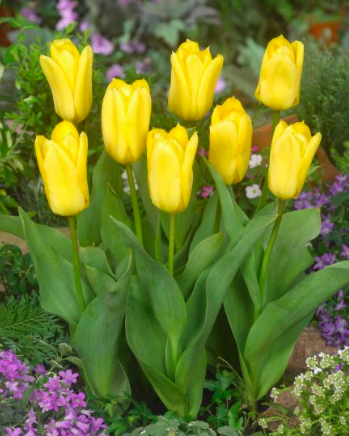 네덜란드의 활기찬 Yellow Pomponette 튤립은 마치 하늘에서 내려온 작은 햇살 덩어리처럼 정원에 따뜻함과 생기를 선사하는 매력을 지니고 있습니다. 4월 중순부터 5월 초까지 피어나는 이 사랑스러운 튤립은 밝은 레몬 노란색을 띠며, 작고 동그란 꽃 모양이 마치 폼폰 장식처럼 앙증맞고 귀여운 인상을 줍니다. 키가 30-40cm로 다른 튤립에 비해 다소 작은 편이지만, 한 줄기에 여러 송이가 모여 피는 특성으로 인해 정원의 어느 각도에서도 눈에 띄는 존재감을 발휘합니다. 꽃잎은 부드러운 실크처럼 미세한 질감을 가지고 있으며 햇빛을 받을 때마다 반짝여 마치 작은 태양들이 방방 날아다니는 듯한 생동감을 줍니다. 이 튤립은 네덜란드에서 가장 사랑받는 미니어처 튤립으로 손꼽히며, 특별히 도시형 정원이나 작은 발코니 정원에서 인기가 많습니다.