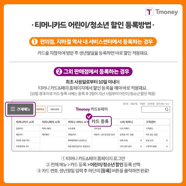 - 재등록 시 청년 전용 할인카드로 변경 가능.