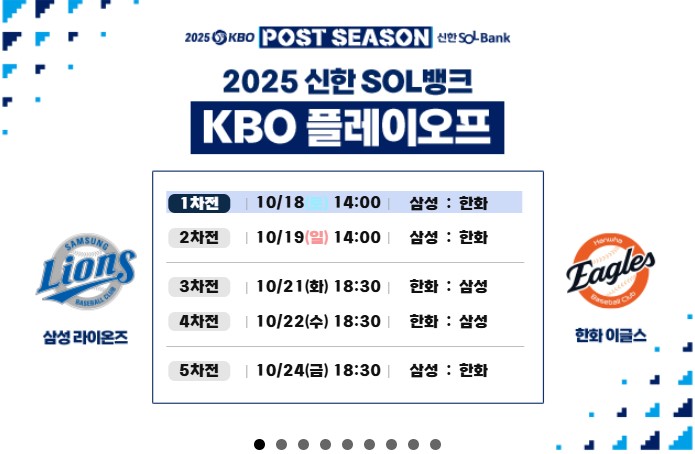 | 2025 KBO 플레이오프 일정 & 예매 총정리 — 한화 vs 삼성, 10월 18일 개막! (0) | 2025.10.15 |